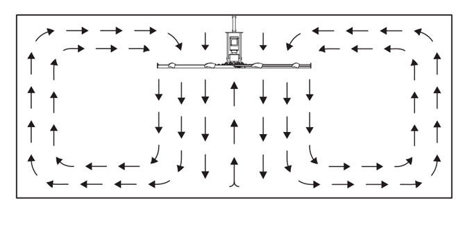 氣流從大型吊扇扇葉向地面吹動,當氣流撞擊地面時,它會向各個方向向外推送,往外不斷延伸,直至最大傳送距離或障礙物。